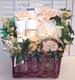 A perfect bath basket that she can use for those special relaxation moments. She will find in this basket Camille Beckman's French Vanilla drawer sachet, body butter, glycerin hand therapy, silky body cream, bubble bath, glycerin soap, a Bridgewater votive candle, a body polisher and a shower and bath net exfoliating puff.