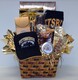 Every Pittsburgh Steelers football fan will this basket. It is built in a Steelers lunch tote. It contains Pittsburgh Steelers mints,coasters, playing cards, mug, and license plate. Along with Pittsburgh Pretzels, Trello's chocolate Steelers bar, cheese crisps, caramel popcorn and coffee.