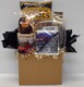 The Sofisticated Gourmet basket is big, bountiful, beautifully decorated and filled with delicious gourmet foods to share and enjoy: candy fruit drops, chocolate filled wafer cookies, gourmet coffee, peanut brittle, French truffles, Ghirardelli caramel squares, sugar sticks, two gourmet ciders, caramel popcorn, gourmet cocoa, cookie wafer rolls, malt balls and raspberry cream sticks.