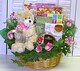 You will surprise and delight the recipient of this gift basket. It contains taffy, gourmet cookies, gourmet caramel corn, chocolate bar, gourmet cocoa, chocolate covered peanuts and an adorable 12” plush teddy bear. DUE TO THE DISRUPTION IN OUR SUPPLY CHAIN CAUSED BY THE CORONAVIRUS SOME ITEMS MAY BE OUT OF STOCK. PLEASE CALL 724-265-4443 TO PLACE YOUR ORDER.