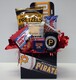 Score a home run with Basketique’s Pittsburgh Pirates gift basket. This basket would be the perfect addition to game day! It contains a Pittsburgh Pirates Checkers game, a Pittsburgh Pirates Umbrella, Pittsburgh Pirates mug, Pittsburgh Pirates coasters, Pretzel Crazy pretzel, Fortunes gourmet coffee, almond cranberry popcorn, gourmet cookies and Gourmet Cheese sticks.