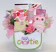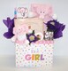 Welcome the special baby girl with this adorable 15" Baby Ganz Teddy Bear that rattles. This gift also comes with a dozen fresh baked chocolate chunk cookies, hot chocolate and caramel popcorn.