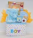 Welcome the special baby boy with this adorable 15" Baby Ganz Teddy Bear that rattles. This gift also comes with a dozen fresh baked chocolate chunk cookies, hot chocolate and caramel popcorn.