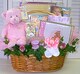 The baby is home, welcome her is style! This basket contains a Gund photo album, caramel popcorn, Baby Ganz embroidered tee shirt, plush baby elephant rattle, elephant blanket, diaper disposal bags, magnetic frame and a silver block bank.